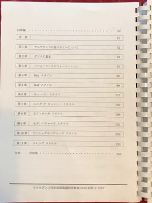 本教本では、各基本スタイルにおける様々なダンススタイルの違いにおいても共通項と思われる基本的な技術を精査し、認定指導員として最低限把握しておくべき知識と基礎技術をまとめ、現在では 『サルサダンス検定』や 『競技会での規定ルーティン』、そして 『サルサチャレンジカップ オンラインの振り付け規定ルーティン』も、こちらの教本から出題されています。
