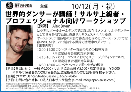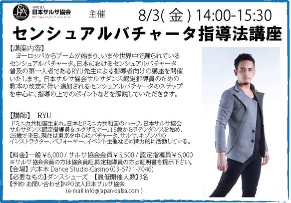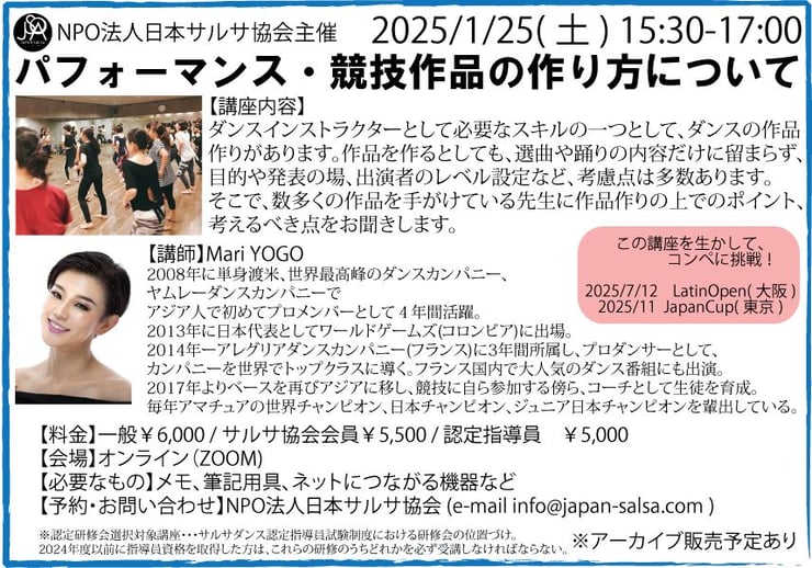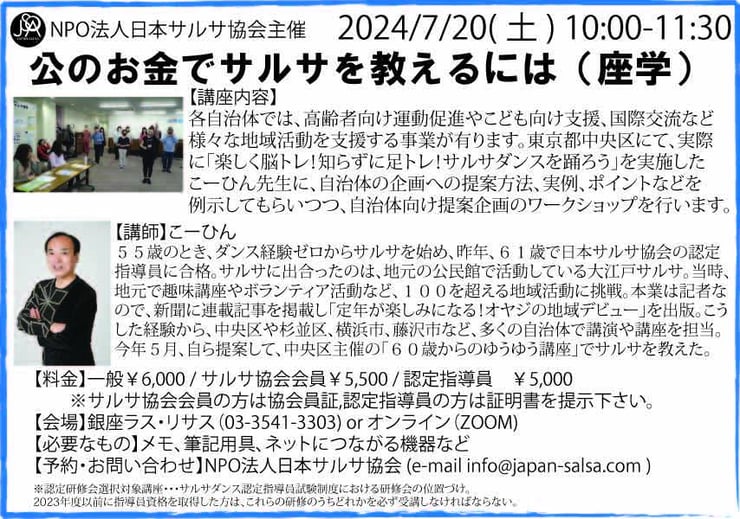 【料金】一般¥6,000 / サルサ協会会員¥5,500 / 認定指導員 ¥5,000