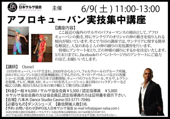 2017年 4/23(日) 日本サルサ協会後援・コンペティションの為の対策講座【2部制】
